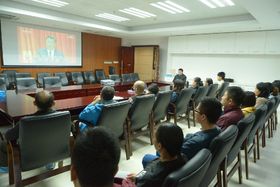 會(huì)議上,全體黨員職工佩戴黨徽,認(rèn)真聆聽習(xí)近平總書記作的重要講話。這次大會(huì)的主題是:不忘初心,牢記使命,高舉中國特色社會(huì)主義偉大旗幟,決勝全面建成小康社會(huì),奪取新時(shí)代中國特色社會(huì)主義偉大勝利,為實(shí)現(xiàn)中華民族偉大復(fù)興的中國夢(mèng)不懈奮斗。黨的十九大是在全面建成小康社會(huì)關(guān)鍵階段、中國特色社會(huì)主義發(fā)展關(guān)鍵時(shí)期召開的一次重要大會(huì),對(duì)鼓舞和動(dòng)員全黨全國各族人民繼續(xù)推進(jìn)全面建成小康社會(huì)、堅(jiān)持和發(fā)展新時(shí)代中國特色社會(huì)主義具有重大意義。