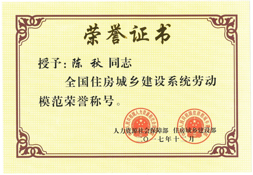熱烈祝賀我公司陳秋同志榮獲2017年度“全國(guó)住房城鄉(xiāng)建設(shè)系統(tǒng)勞動(dòng)模范”榮譽(yù)稱號(hào)。一個(gè)勞模是一面旗幟,是推動(dòng)企業(yè)發(fā)展和前進(jìn)的先行者。公司號(hào)召全體員工以勞模為榜樣,攜手奮力砥礪前行,為企業(yè)實(shí)現(xiàn)超越發(fā)展貢獻(xiàn)聰明才智。