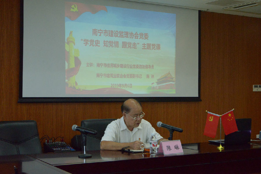 為扎實(shí)推進(jìn)“不忘初心 牢記使命”主題教育活動(dòng),同時(shí)紀(jì)念中國(guó)共產(chǎn)黨成立98周年,2019年9月6日上午,我公司黨員職工參加了南寧市建設(shè)監(jiān)理協(xié)會(huì)黨委組織開展的“學(xué)黨史 知黨情 跟黨走”主題黨課活動(dòng),此次黨課邀請(qǐng)到南寧市住房城鄉(xiāng)建設(shè)行業(yè)黨委政治指導(dǎo)員、兼南寧市建筑聯(lián)合會(huì)黨委副書記陳琳同志給全體黨員講述中國(guó)共產(chǎn)黨的奮斗歷程,回顧黨史,不忘初心。