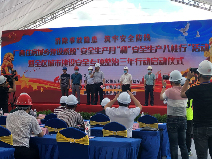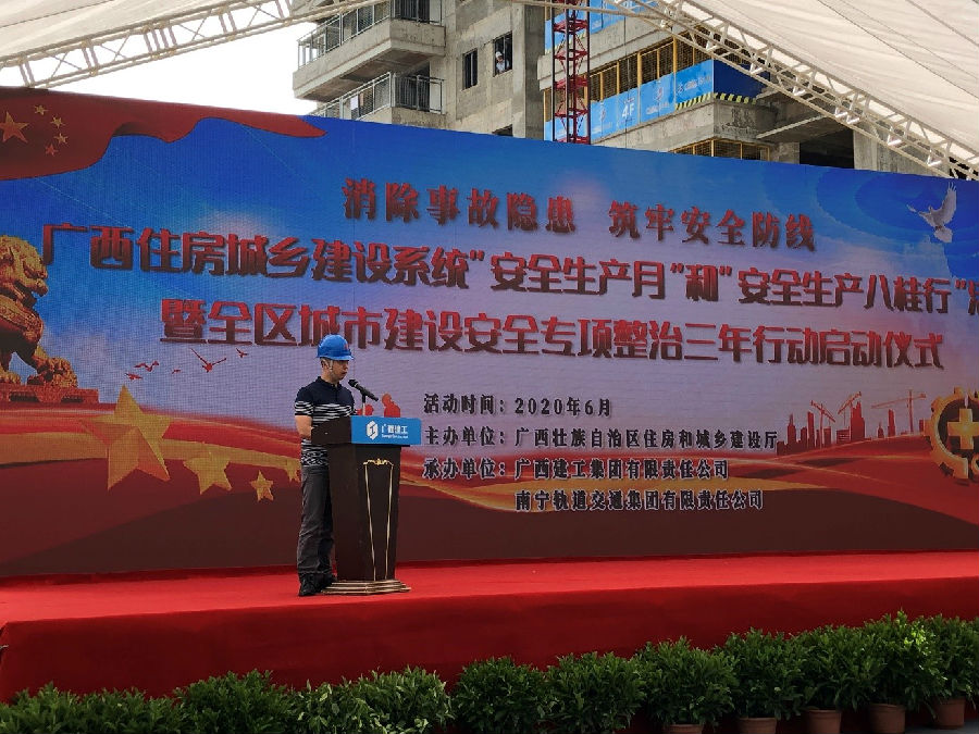 6月11日,全區(qū)住房城鄉(xiāng)建設(shè)系統(tǒng)“安全生產(chǎn)月”“安全生產(chǎn)八桂行”活動(dòng)暨全區(qū)城市建設(shè)安全專項(xiàng)整治三年行動(dòng)在我公司負(fù)責(zé)監(jiān)理的南寧市軌道一號(hào)城項(xiàng)目舉行啟動(dòng)儀式。自治區(qū)住建廳、自治區(qū)應(yīng)急廳、廣西建工集團(tuán)、南寧軌道集團(tuán)以及我公司領(lǐng)導(dǎo)出席了啟動(dòng)儀式并作重要講話。