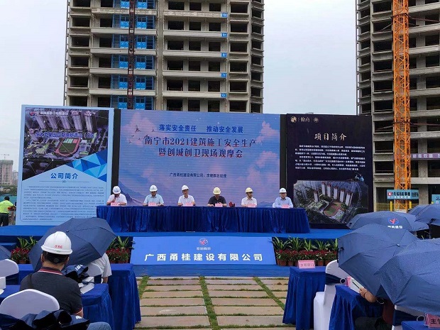 2021年6月4日,公司組織員工參加了由南寧市住建局、南寧市建管中心、南寧市建設(shè)質(zhì)安協(xié)會、廣西恒大企業(yè)集團有限公司、廣西甬桂建設(shè)有限公司聯(lián)合承辦的南寧市建設(shè)工程2021建筑施工安全生產(chǎn)暨創(chuàng)城創(chuàng)衛(wèi)現(xiàn)場觀摩會。今年6月是全國第20個“安全生產(chǎn)月”,以“落實安全責(zé)任制,推動安全發(fā)展”為主題。啟動儀式由市建設(shè)質(zhì)安協(xié)會李壽坤會長主持,市住建局黃贊副局長、市建管中心錢強主任、廣西甬桂建設(shè)有限公司總經(jīng)理李朝群等出席會議,參加啟動儀式的還有各縣、城區(qū)、開發(fā)區(qū)主管部門領(lǐng)導(dǎo),駐市施工、監(jiān)理企業(yè)及項目業(yè)主主要負責(zé)人。