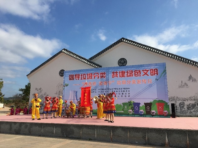 我公司團委積極響應號召,12月4日上午8點10分,公司團委書記劉媛佳到嘉賓路2號統(tǒng)一乘車出發(fā),10點到達劉圩鎮(zhèn)?;顒邮紫扔墒形兄睓C關(guān)領(lǐng)導致辭,接著舉行垃圾分類宣傳文藝演出?;顒蝇F(xiàn)場以競猜、搶答等方式向民眾宣傳垃圾分類知識。