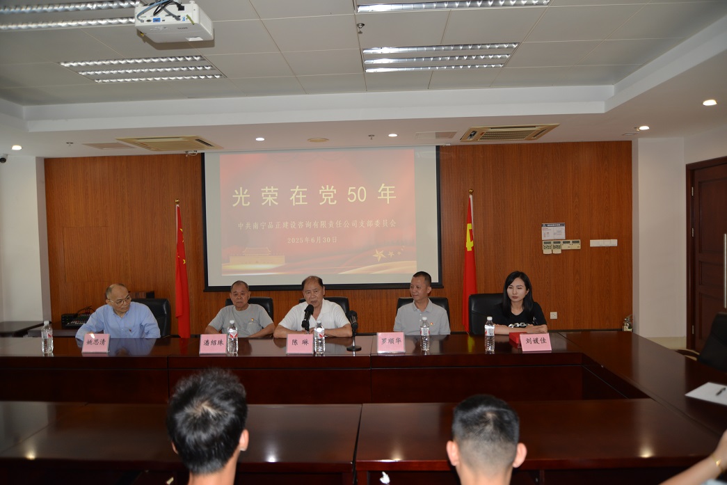 百年征程波瀾壯闊,百年初心歷久彌堅(jiān)。在全國上下喜迎中國共產(chǎn)黨成立104周年之際,南寧市住建行業(yè)黨委于2025年6月30日下午到南寧品正黨支部對老黨員潘紹珠同志進(jìn)行慰問,并給其頒發(fā)“光榮在黨50年”紀(jì)念章,傳達(dá)了黨中央對老黨員的關(guān)懷肯定之意,表達(dá)了對老黨員的崇高敬意之情,激勵廣大黨員以更加高昂的姿態(tài),奮力開創(chuàng)工作新局面。