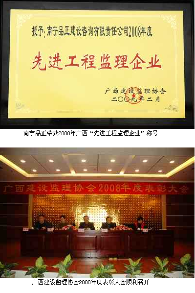 為推動(dòng)我區(qū)建設(shè)監(jiān)理行業(yè)的快速發(fā)展,引導(dǎo)我區(qū)企業(yè)創(chuàng)建“名牌監(jiān)理企業(yè)”,激發(fā)監(jiān)理人員的愛崗敬業(yè)精神,在全區(qū)樹立起建設(shè)監(jiān)理行業(yè)的良好形象,近日,廣西建設(shè)監(jiān)理協(xié)會(huì)在南寧召開了“廣西建設(shè)監(jiān)理協(xié)會(huì)2008年度表彰大會(huì)”。大會(huì)授予南寧品正建設(shè)咨詢有限責(zé)任公司等16家單位“廣西先進(jìn)工程監(jiān)理企業(yè)”稱號(hào),授予南寧品正曾振華、黃燕玲和陳秋等36人“廣西優(yōu)秀總監(jiān)理工程師”稱號(hào),授予南寧品正姚思清、劉豫黔和宋熒冬等40人“廣西優(yōu)秀監(jiān)理工程師”稱號(hào)。大會(huì)號(hào)召受到表彰的先進(jìn)單位和優(yōu)秀個(gè)人,戒驕戒躁、再接再厲,開拓進(jìn)取,再創(chuàng)佳績(jī),為全區(qū)建設(shè)監(jiān)理事業(yè)的發(fā)展做出更大的貢獻(xiàn)。