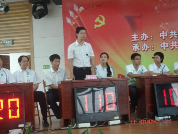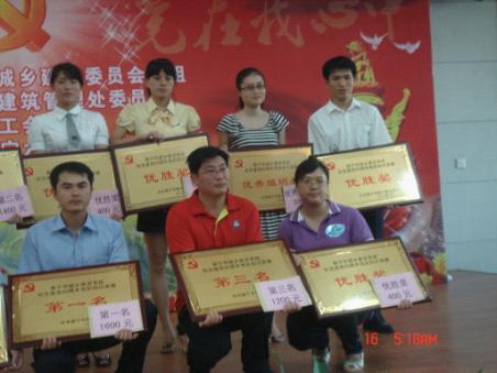 根據(jù)市城鄉(xiāng)建委有關(guān)文件精神,南寧品正黨支部高度重視,于“七一”前夕,精心組織開展豐富多彩的活動(dòng)慶祝建黨90周年,取得較好成效。一是組織員工參加市紀(jì)委慶祝建黨90周年暨“南寧清風(fēng)”反腐倡廉書畫攝影作品征稿活動(dòng),公司黨支部共報(bào)送一幅書法,8幅照片,作品以慶祝建黨90周年展黨的輝煌成就,頌清風(fēng)正氣揚(yáng)南寧發(fā)展成果為主題。二是組織10名員工參加市城鄉(xiāng)建委系統(tǒng)合唱隊(duì),隊(duì)員們遵守紀(jì)律,認(rèn)真排練。6月13日,市城鄉(xiāng)建委參加市直機(jī)關(guān)慶祝建黨90周年“綠城紅歌獻(xiàn)給黨”合唱比賽,獲三等獎(jiǎng)。三是組織選派李智、陳倩、黃綿全三名員工參加市城鄉(xiāng)建委系統(tǒng)慶祝建黨90周年黨的知識(shí)競賽,獲預(yù)賽第一名,決賽優(yōu)勝獎(jiǎng)和優(yōu)秀組織獎(jiǎng)。四是,南寧品正黨支部與市建設(shè)建筑管理監(jiān)察支隊(duì)黨支部于7月1日在金滿園休閑觀光果園開展紀(jì)念建黨90周年暨“結(jié)對(duì)共建,先鋒同行”主題黨日活動(dòng)。雙方單位黨員、入黨積極分子、群眾代表等約70人參加活動(dòng)?;顒?dòng)內(nèi)容有重溫入黨誓詞、唱紅歌、黨史和廉政知識(shí)搶答、文體活動(dòng)等。