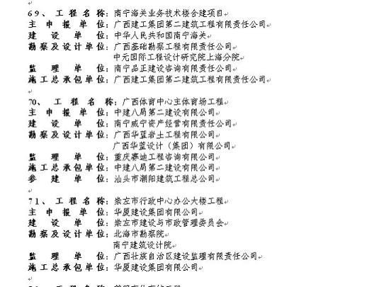 2011年11月底,喜訊傳來(lái),南寧海關(guān)業(yè)務(wù)技術(shù)樓合建項(xiàng)目工程榮獲2011年度國(guó)家優(yōu)質(zhì)結(jié)構(gòu)獎(jiǎng),這是該項(xiàng)目繼2009年度南寧市工程質(zhì)量“優(yōu)質(zhì)結(jié)構(gòu)獎(jiǎng)”和2010年度南寧市建設(shè)工程“邕城杯”獎(jiǎng)后,得到的又一殊榮。
